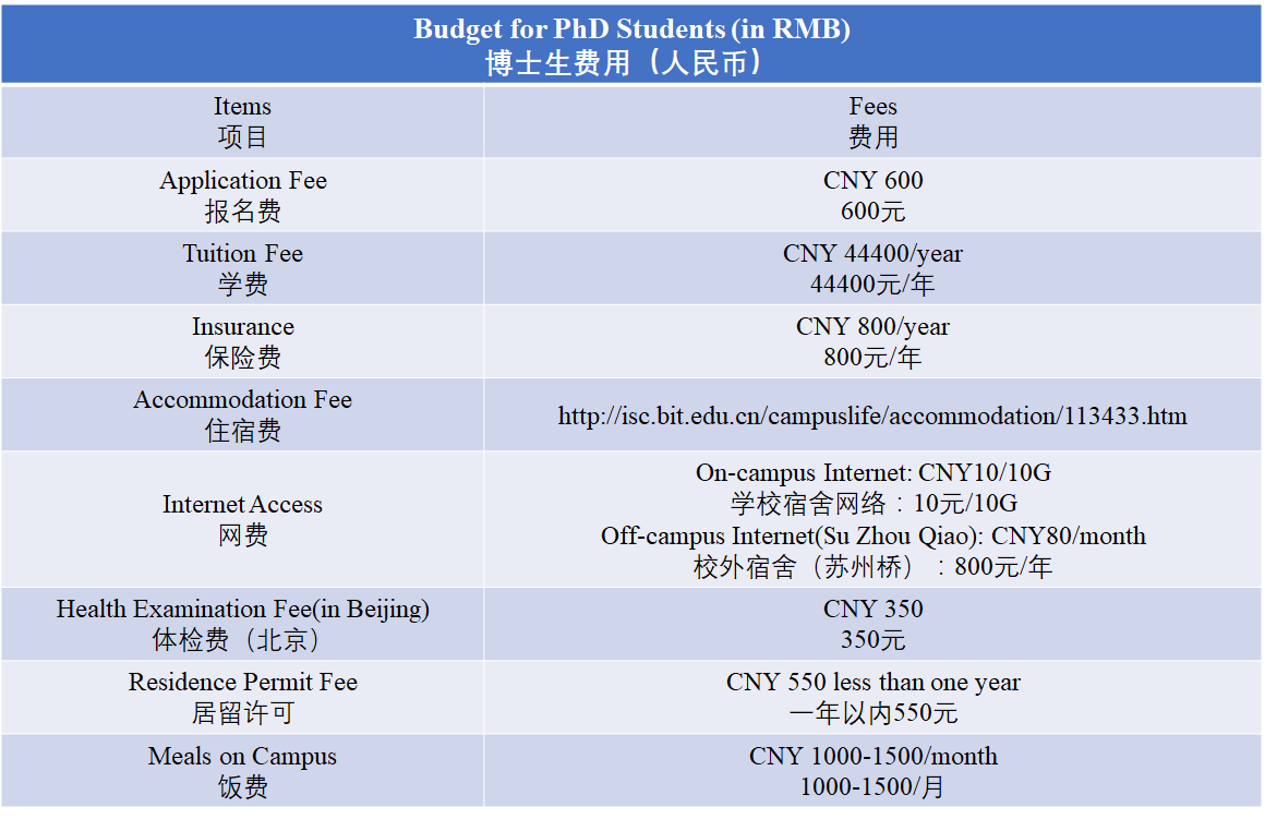 BIT requires all foreign students to be covered by the Comprehensive Insurance Plan of Foreign Students sponsored by Ping-An of China, which includes Accidental Injury Medical Treatment Insurance and Hospitalization Medical Insurance, not covering out-patient treatment expenses of common disease.